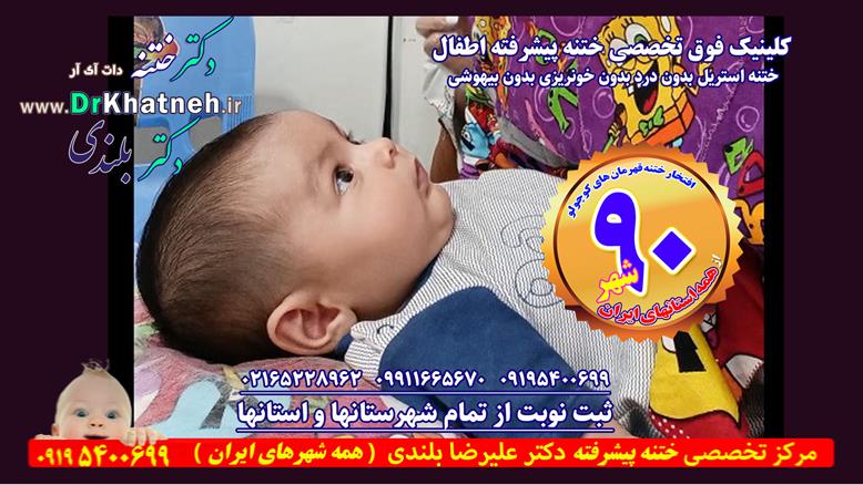 مجهزترین و بزرگترین کلینیک فوق تخصصی ختنه ایران و خاورمیانه با مدرنترین تجهیزات استریل، لیزر و ابزار جراحی و ختنه مدرن با نصف قیمت بیمارستانهای خصوصی تهران با پذیرش از بیش از ۹۰ شهر ( تمام استانها) و ۱۹ کشور بین الملل با بیش از سه هزار ( ۳۰۰۰) فیلم نمونه کار مستند ختنه موفق نوزادان و کودکان ۶ روزه تا ۹ ساله