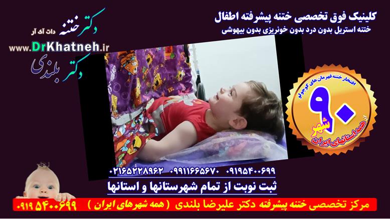 مجهزترین و بزرگترین کلینیک فوق تخصصی ختنه ایران و خاورمیانه با مدرنترین تجهیزات استریل، لیزر و ابزار جراحی و ختنه مدرن با نصف قیمت بیمارستانهای خصوصی تهران با پذیرش از بیش از ۹۰ شهر ( تمام استانها) و ۱۹ کشور بین الملل با بیش از سه هزار ( ۳۰۰۰) فیلم نمونه کار مستند ختنه موفق نوزادان و کودکان ۶ روزه تا ۹ ساله